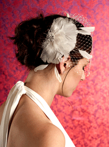 Handcrafted and Custom Cocktail pieces that work interchangeable;y with all the veils .The are detachable and can be worn with out the veil for after the ceremony .The can be made in Custom colors for any event or party.