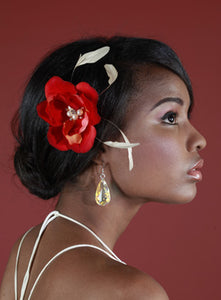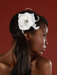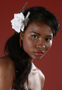 Organza Handcrafted Flower With Hackle Feather Accent Heapiece