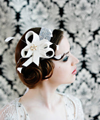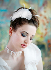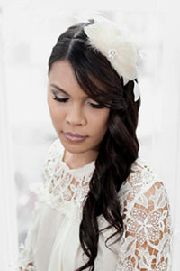 Retro Inspired Bandeau Veil with Fabric Flower ,Feathers and Vintage Inspired Brooch